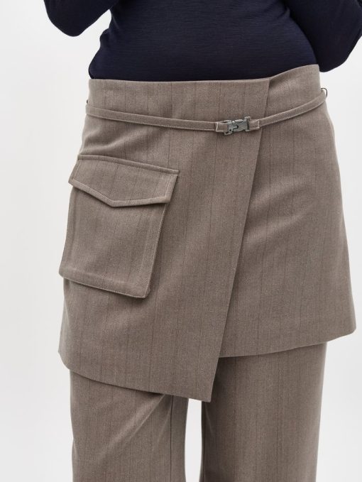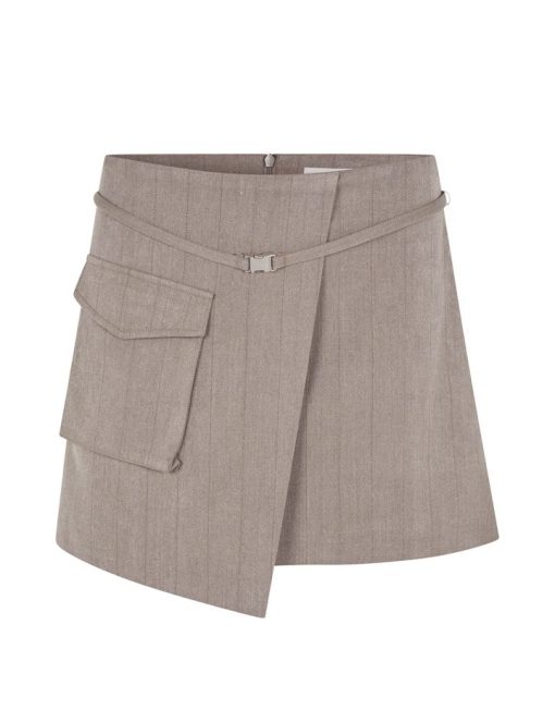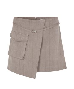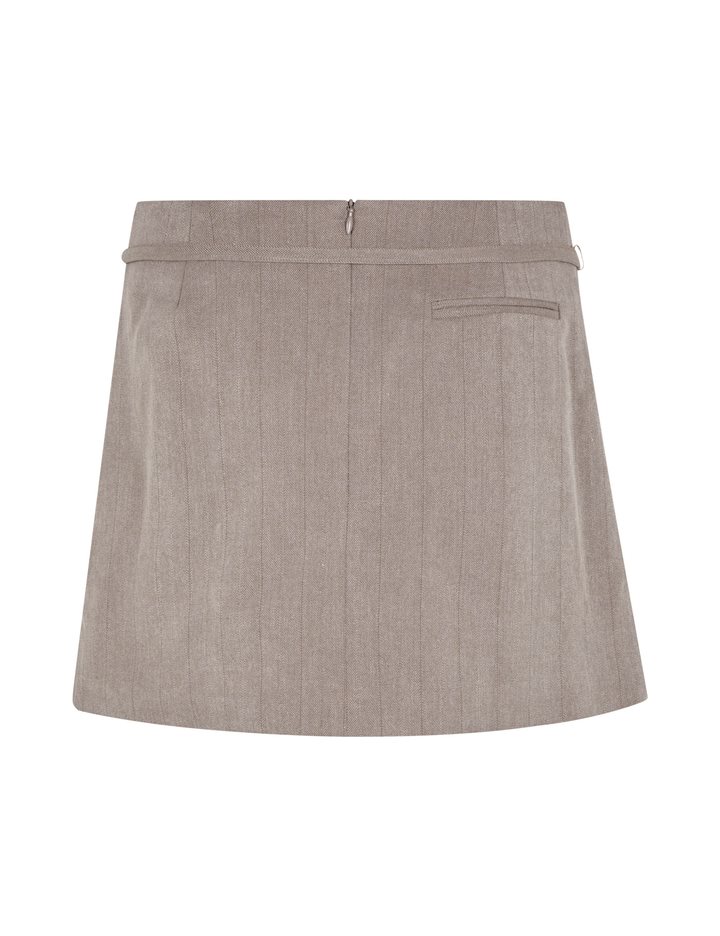Mini skirt with matching belt.- Material: 72% Polyester, 15% Viscose, 5% Lyocell, 5% Wool, 3% Spandex- Closes with a zip at the back- Side pockets- Mini length- Matching belt- Color: Fallen Rock MelangeThe model is 174 cm and wears size S. She is wearing the matching pants, Hija-M in the video.