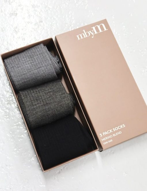 3-pack long socks in wool blend.- Material: 50% Acrylic, 50% Wool- Long socks- 3 pairs in a package- Colour: Black, grey and light grey