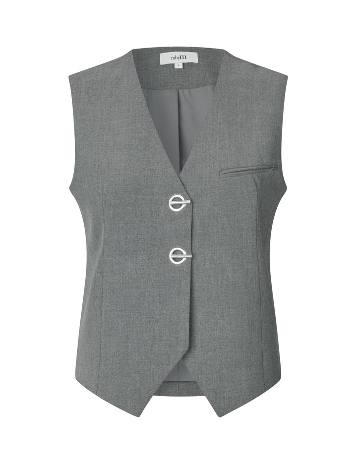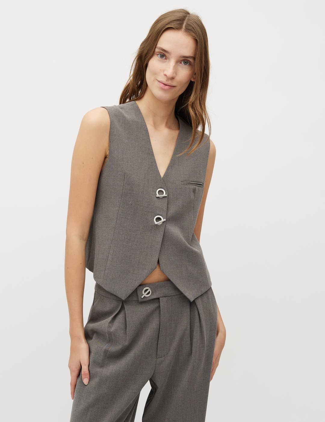 Vest with decorative buckles.- Material: 63% Polyester, 33% Viscose, 4% Elastane- Fastens with buckle- Fitted- Regular length- Chest pocketThe model's height is 176 cm and she is wearing a size S.