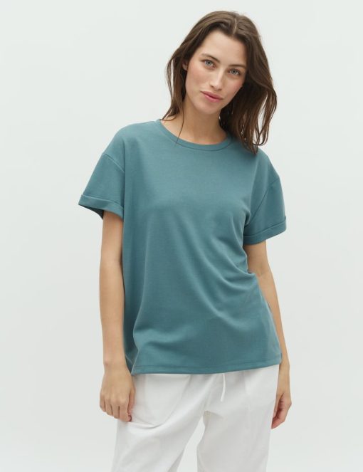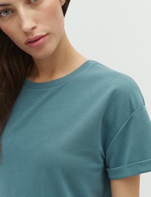 Soft t-shirt with turn-ups at the sleeves.- Material: 80% Lyocell (TENCELâ„¢), 20% Polyester- Loose fit- Round neck- Soft material- Regular lengthThe model's height is 176 cm and she is wearing a size S.