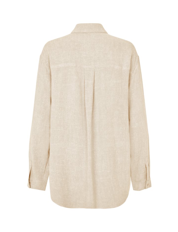 Shirt with buttons.- Material: 80% Viscose, 20% Linen- Long sleeves- Loose fit- Closes with buttons- Chest pocket- Shirt collar- Linen qualityThe model's height is 176 cm and she is wearing size S.