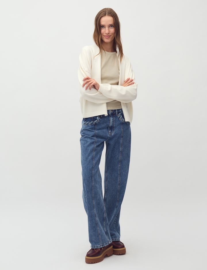 Knit cardigan in slightly oversized fit.- Material: 70% Viscose, 30% Polyester- Long sleeves with ribbed trim- Loose fit- Slight oversize fitThe model's height is 176 cm and she is wearing a size S.