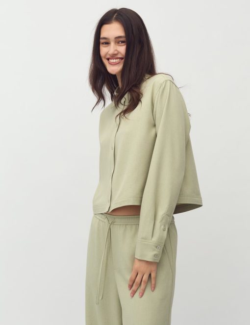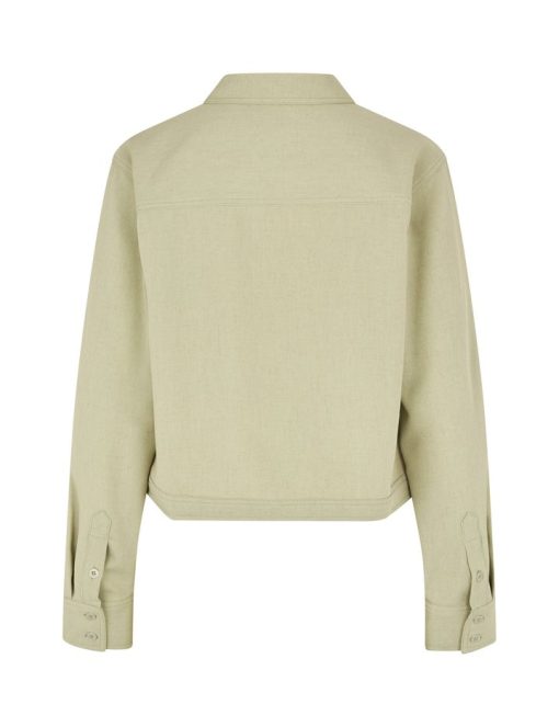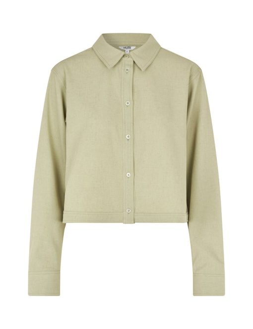 Simple oversized shirt.- Material: 89% Polyester, 7% Linen, 4% Elastane- Button closure- Loose fit- Short length- Shirt collarThe model is 176 cm tall and is wearing size S/M