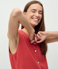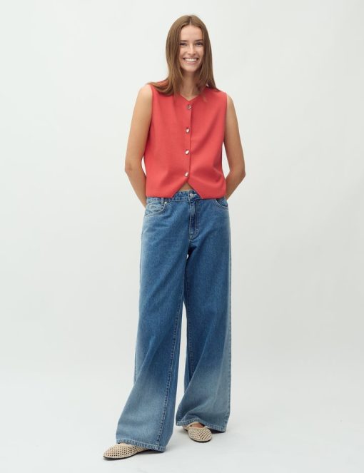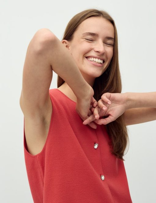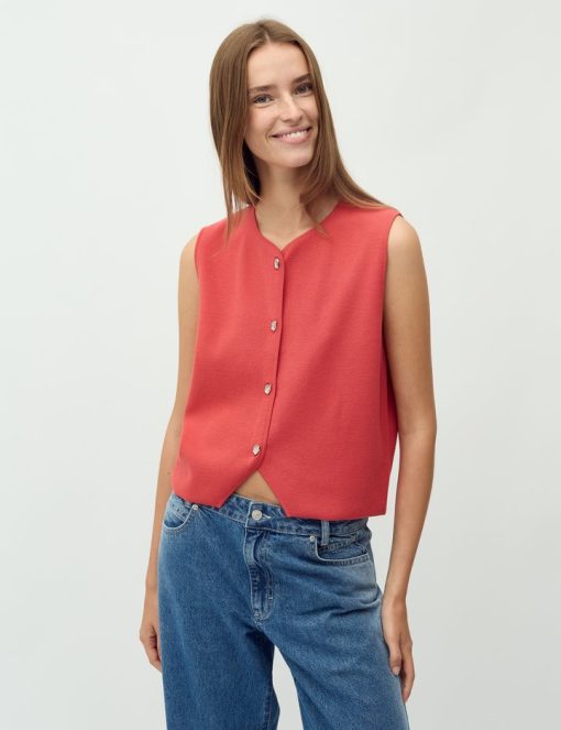 Knitted west with silver buttons.- Material: 72% Viscose, 28% Polyester- Loose fit- Knitted- Small silver buttons- Soft qualityThe model is 176 cm tall and is wearing a size S.