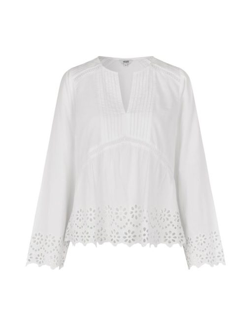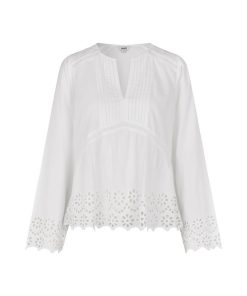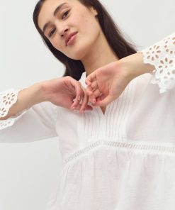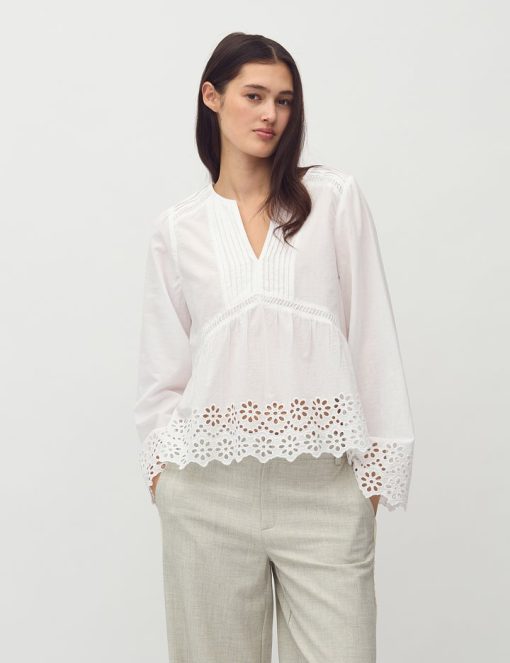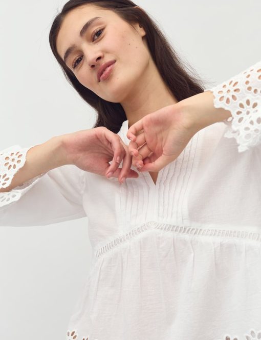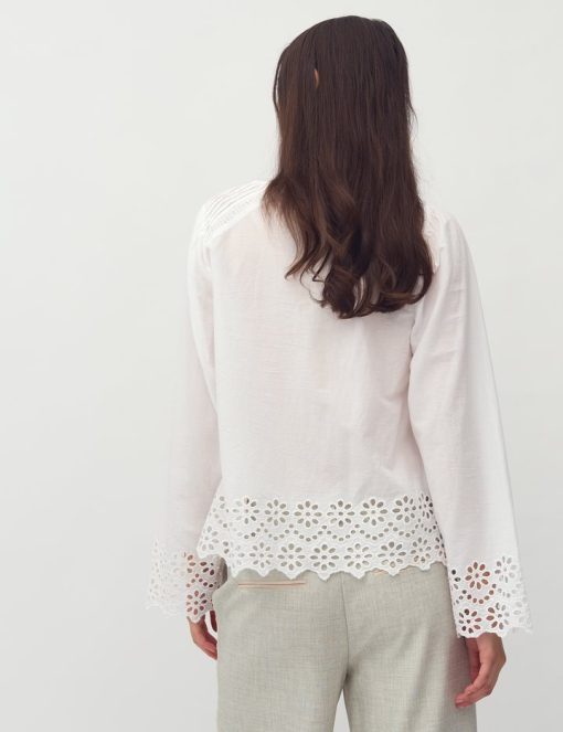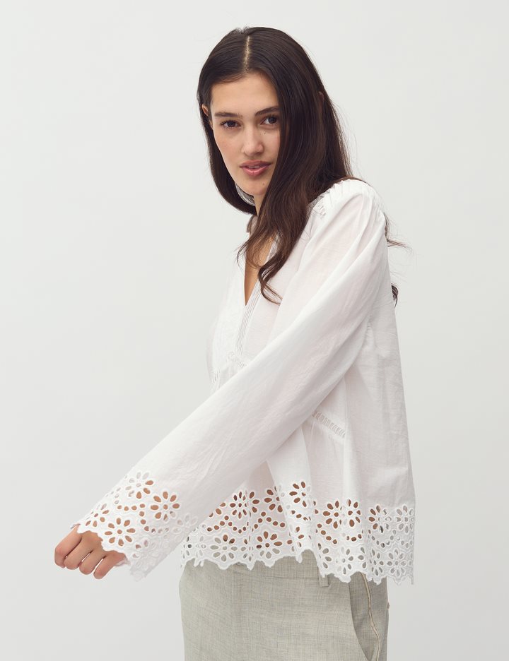 Blouse with pleats and embroidery details.- Material: 100% Cotton- Long sleeves with embroidery details- Round neck with opening- Pleats at shoulders and chest- Loose fit- Regular lengthThe model's height is 176 cm and she is wearing a size S.