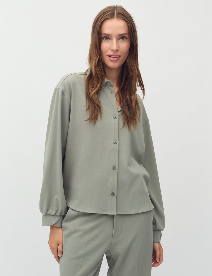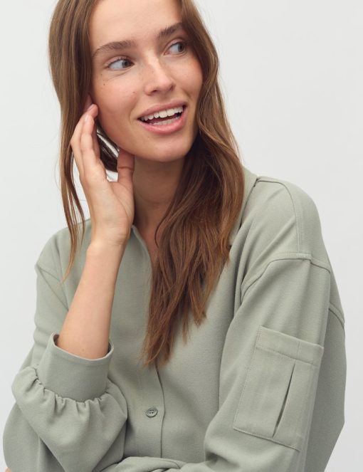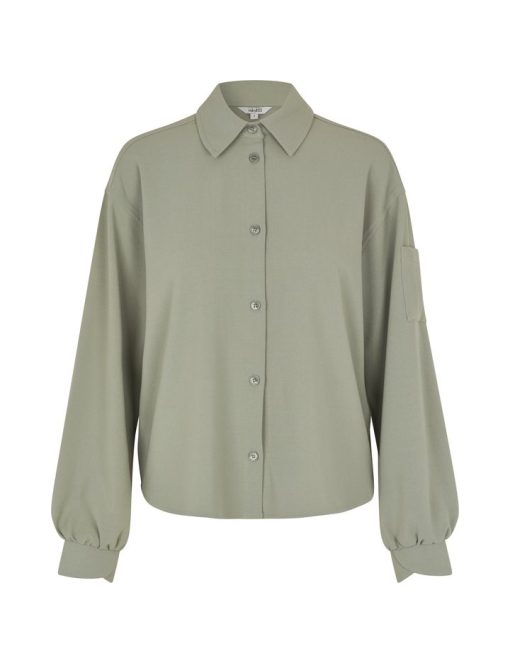 Shirt with pocket detail on sleeve.- Material: 63% Polyester, 33% Viscose, 4% Elastane- Long sleeves with detail at wrist- Button closure- Collar- Pocket on sleeve- Relaxed fit- Normal lengthThe model's height is 176 cm and she is wearing a size S.