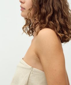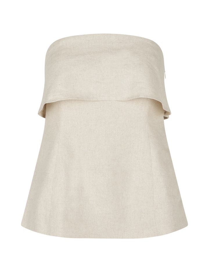 Tube top with two layers and silicone edge.- Material: 55% Linen, 45% Viscose- Linen material- Closes with a zipper on the side- Silicone edge that keeps the top in place- 2 layersThe model's height is 176 cm and she is wearing size S.