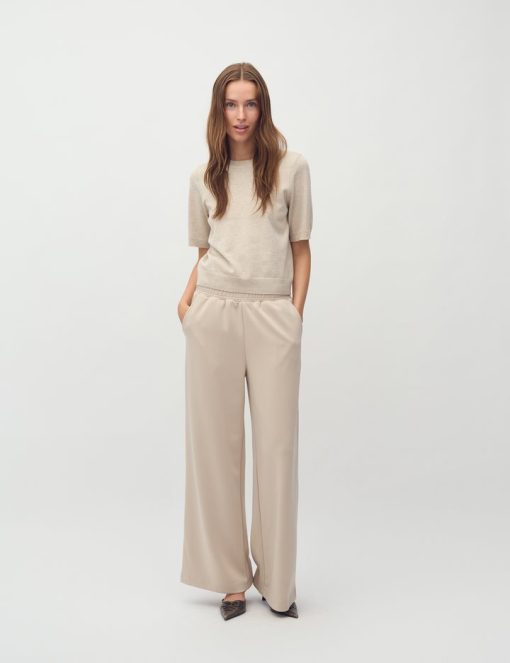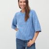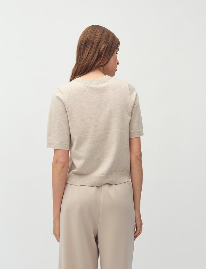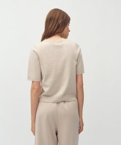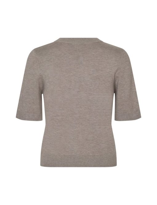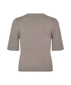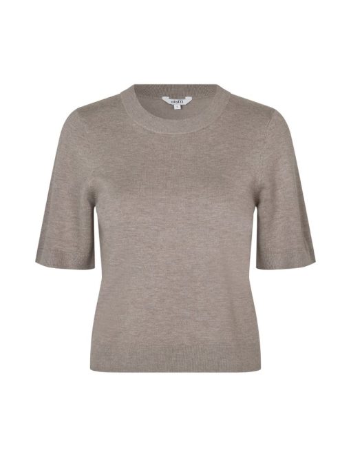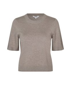Thin knit sweater with short sleeves.- Material: 70% Viscose, 30% Polyester- Round neck- Normal length- Relaxed fit- Short sleeves with ribbed trim- Ribbed hems- Color: Island Fossil Melange