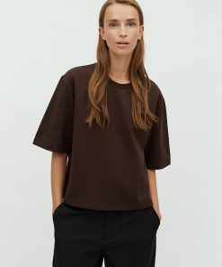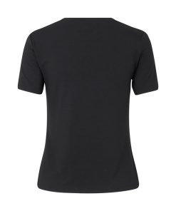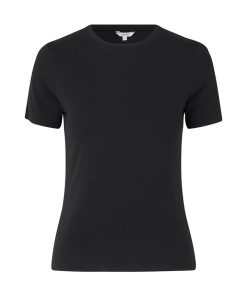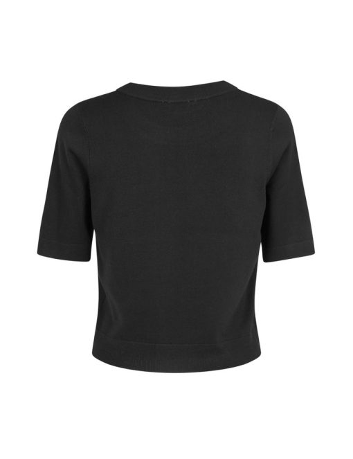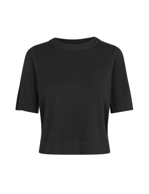 Thin knit sweater with short sleeves.- Material: 70% Viscose, 30% Polyester- Round neck- Normal length- Relaxed fit- Short sleeves with ribbed trim- Ribbed hems- Color: Black