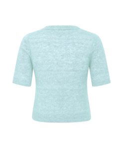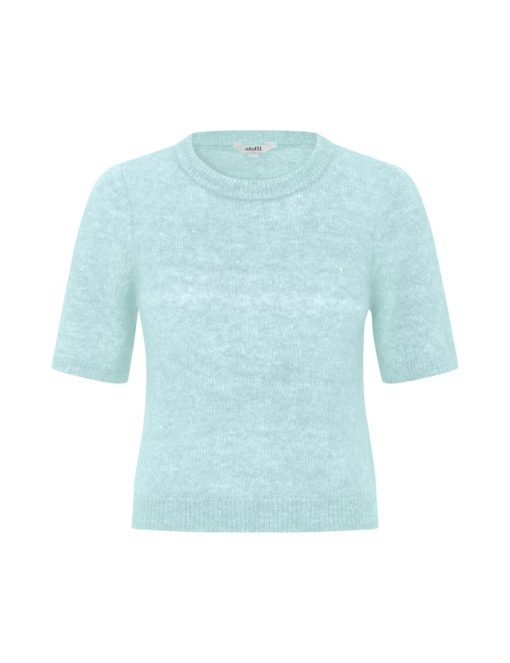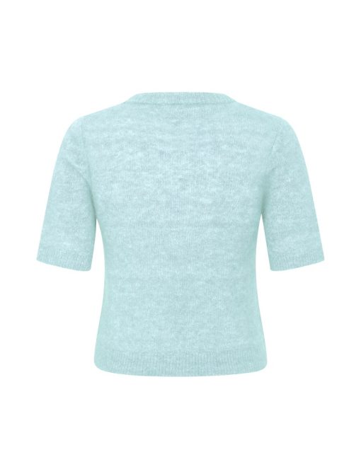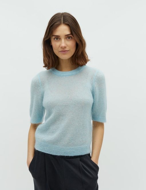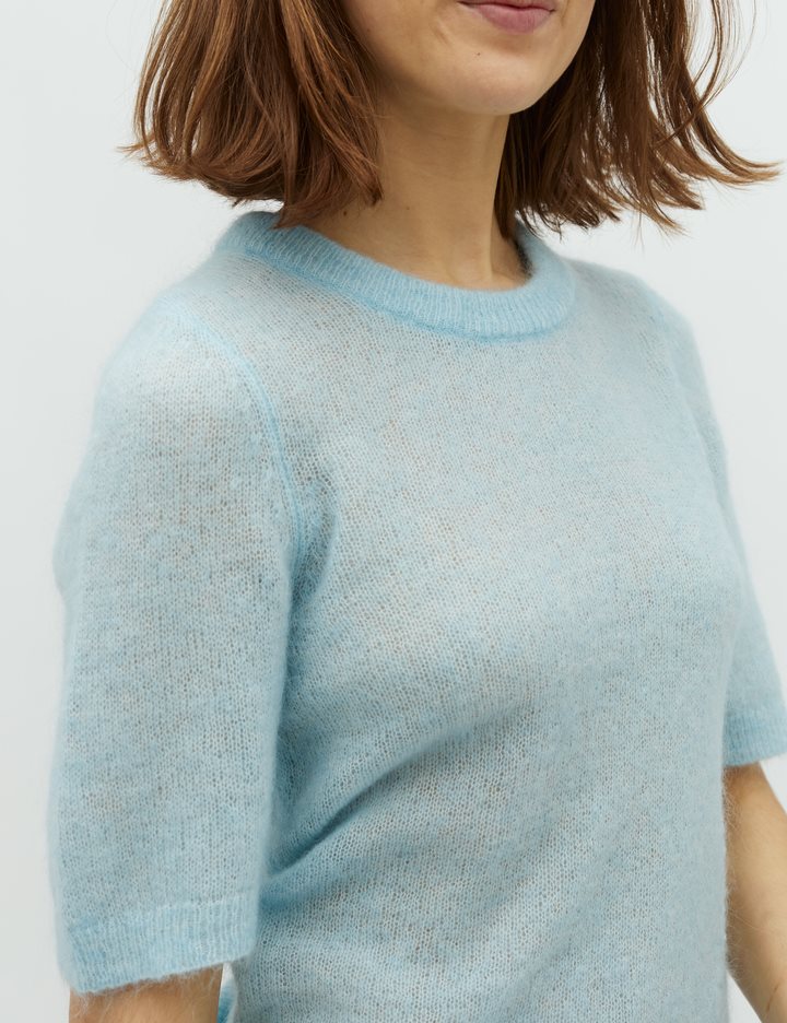 Thin short-sleeved knit- Material: 33% Nylon, 32% Wool, 32% Mohair, 3% Elastane- Short-sleeved- Round neckline- Loose fit- Soft wool mix- Color: Cool Blue