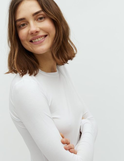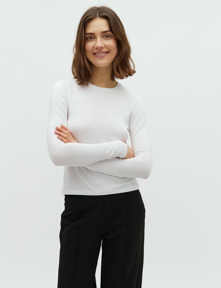 Basic top from mbyM GG. – Stretchy and soft – Long sleeves – Round neck – Tight fit- Colour: Optical White- Material: 95% TENCELâ„¢ Modal,5% Elasthane