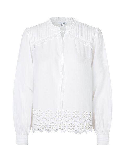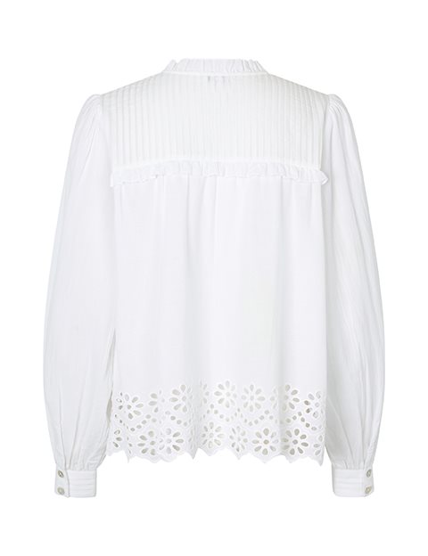 Blouse with lace details- Material: 100% Cotton- Lace details at the bottom- Wide cuffed sleeves- Drawstring at neck- Loose fit- Color: WhiteThe height of the model is 178 cm and she is wearing a size S.