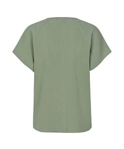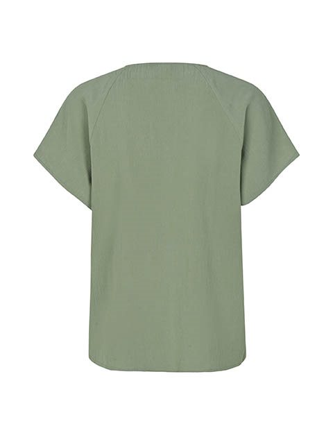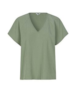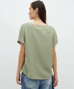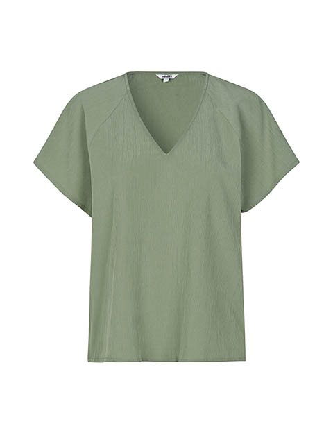 Soft t-shirt with v-neck.- Material: 73% Modal, 27% Polyester- Loose fit – Short raglan sleeves- V neck- Color: Sea SprayThe height of the model is 178 cm and she is wearing a size S.