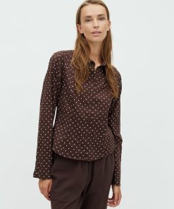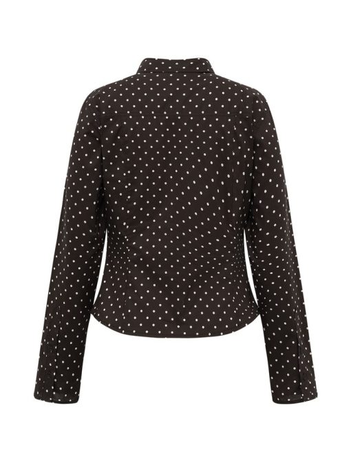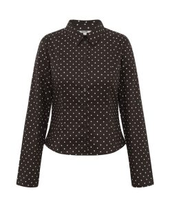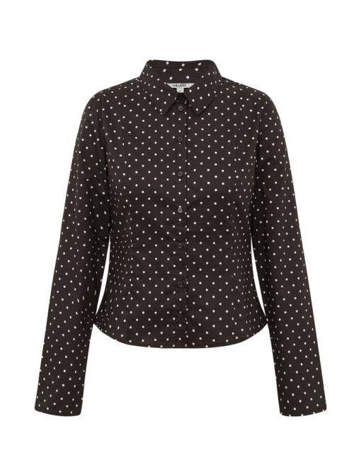 Tight-fit dotted shirt.- Material: 100% Cotton- Shirt collar- Button closure- Tight-fit- Short length- DottedThe height of the model is 176 cm and she is wearing a size S.
