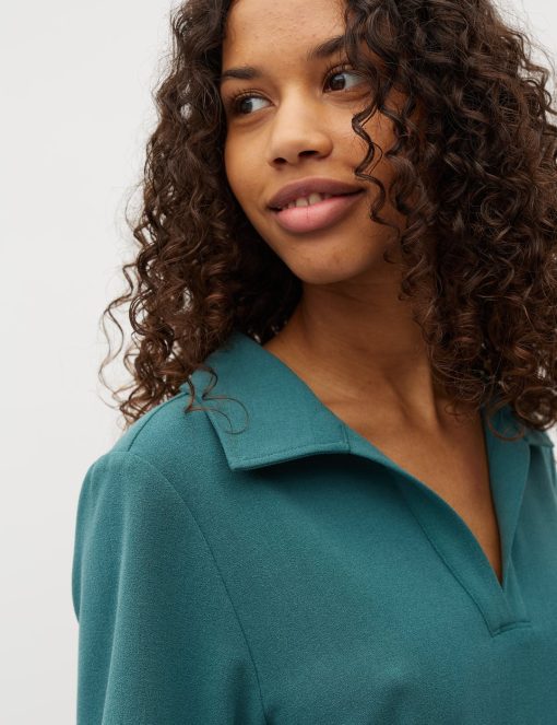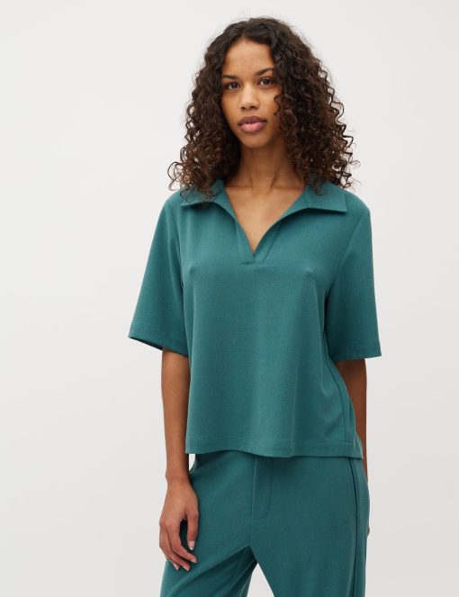 Polo in a soft quality.- Material: 63% Polyester, 33% Viscose, 4% Elastane- Loose fit- Polo collar- Striped- Short sleeves- Soft qualityThe model's height is 176 cm and she is wearing size S.