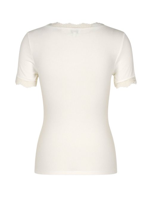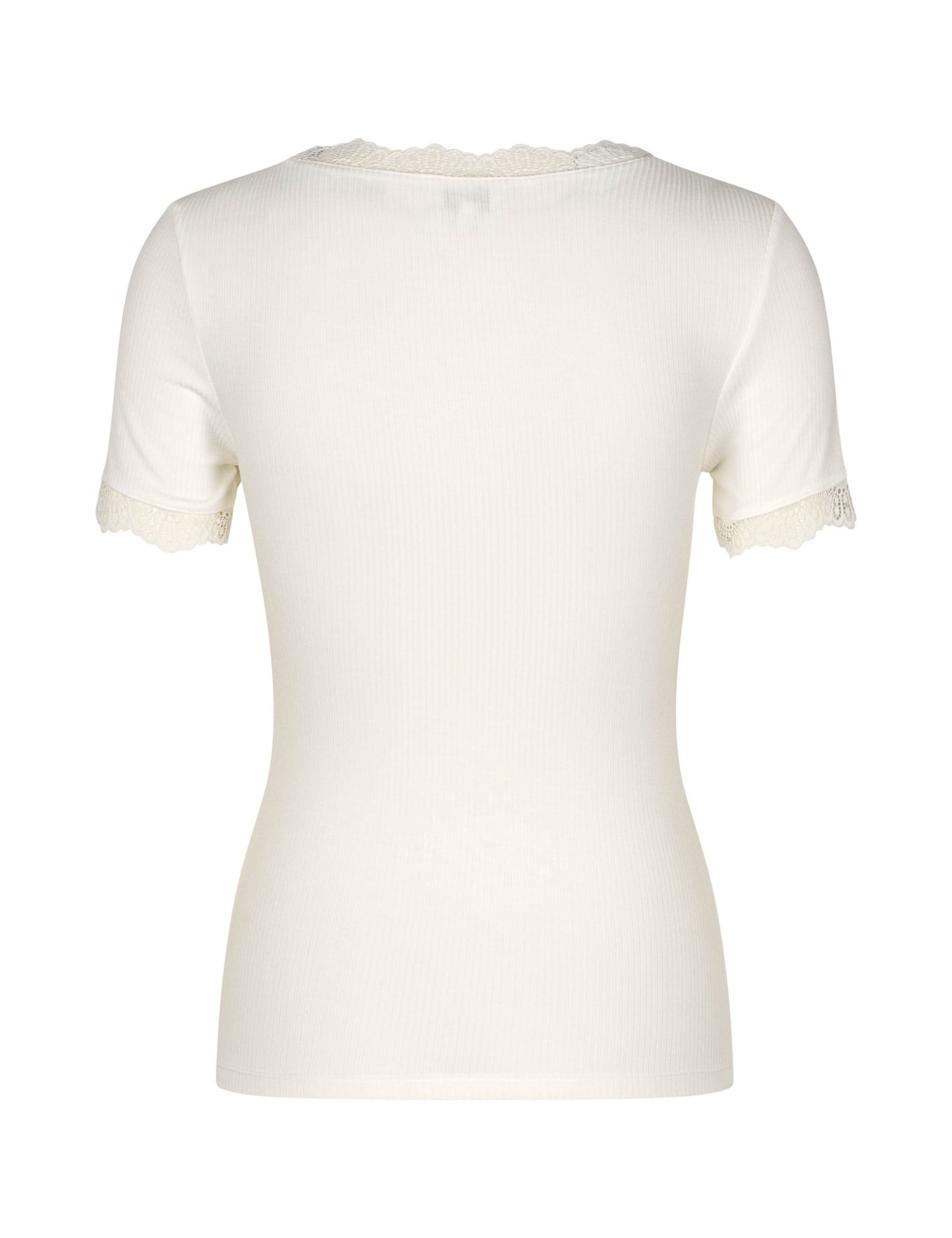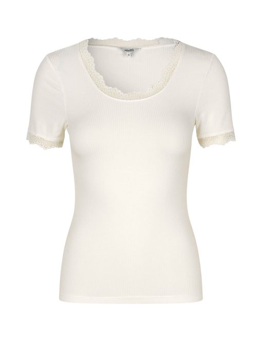 T-shirt with lace details.- Material: 93% Viscose, 3% Elastane- Short sleeves- Round neckline- Tight fitting- Color: Sugar