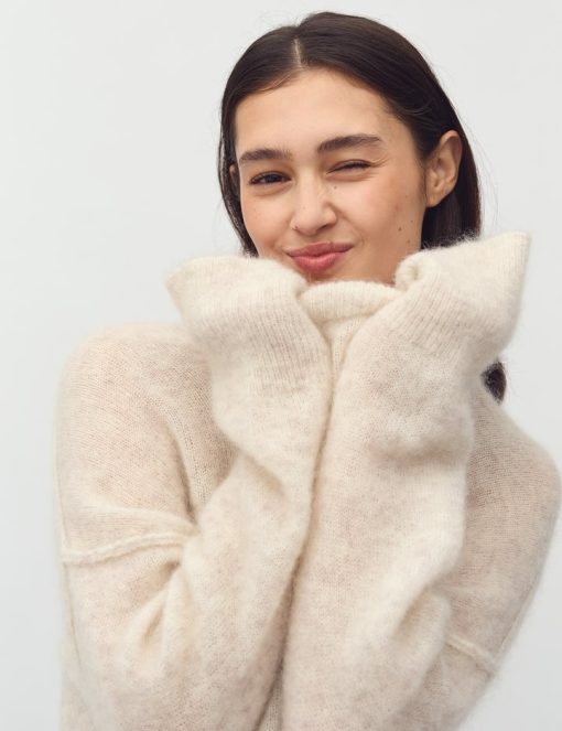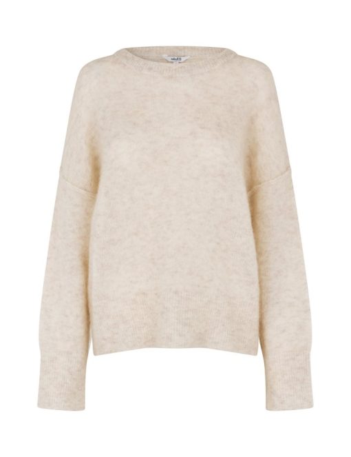 Long sleeve knit in wool- Material: 33% Nylon, 32% Wool, 32% Mohair, 3% Elastane- Round neckline- Long sleeves- Loose fit- Soft wool- Color: Oat MelangeThe model is 175 cm tall and is wearing size S