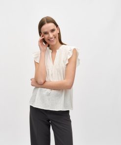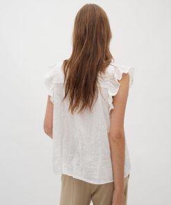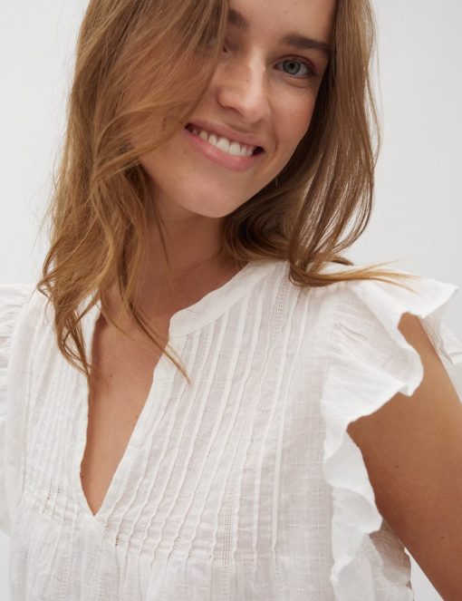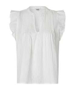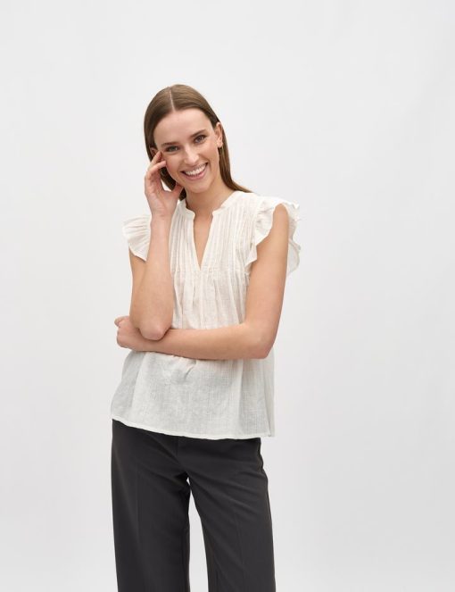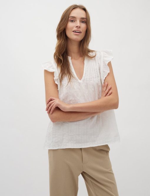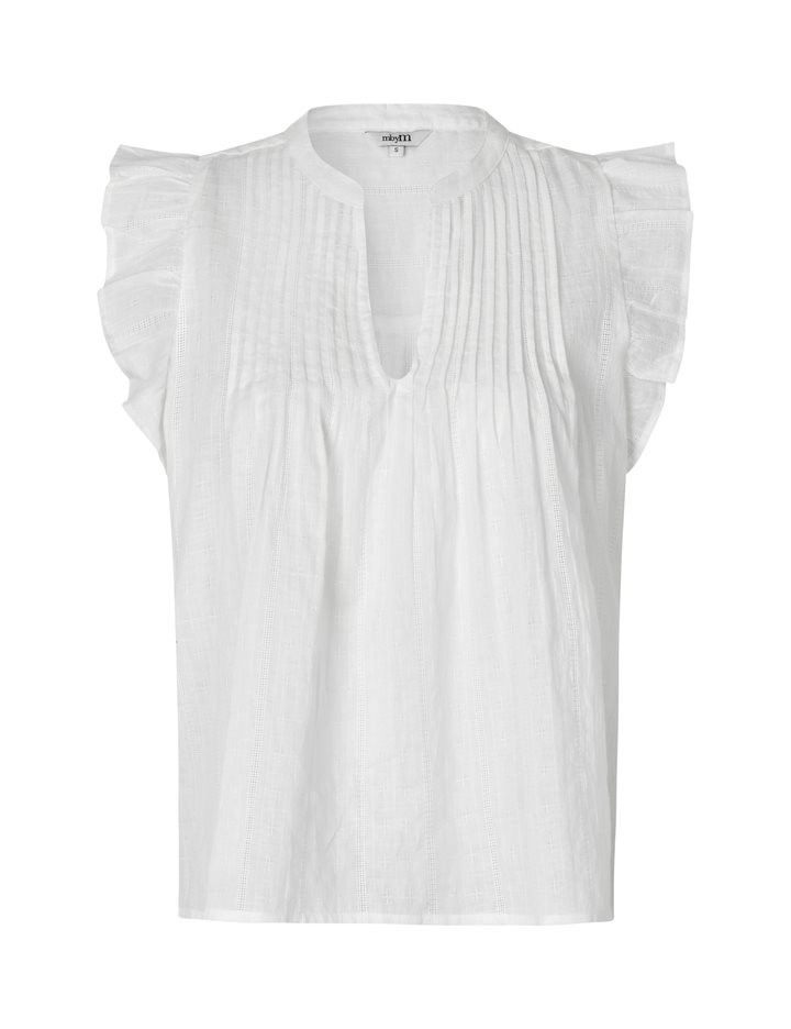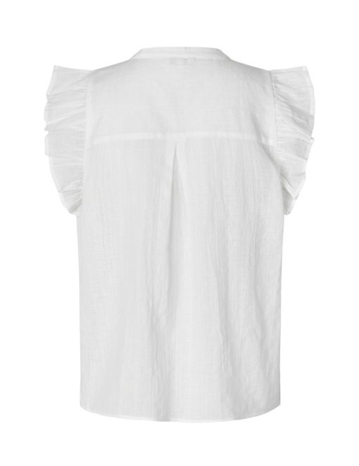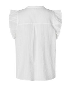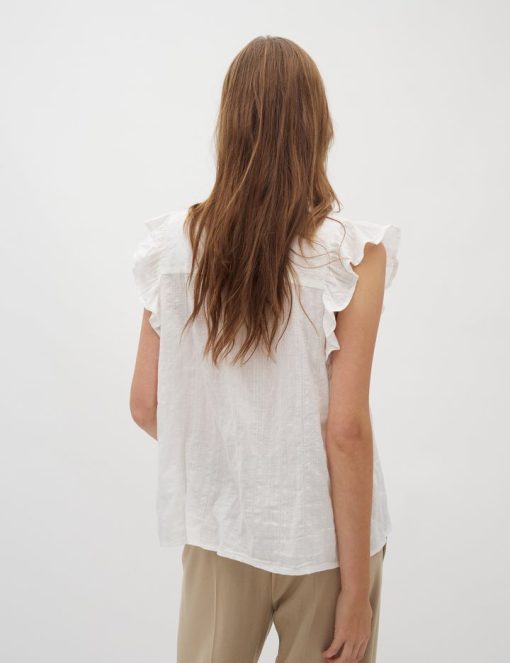 Top with frill details at shoulders.- Material: 100% Cotton- Sleeveless- Round neck with v-neckline- Relaxed fit- Pattern in the fabric- Normal lengthThe height of the model is 175 cm and she is wearing a size S.