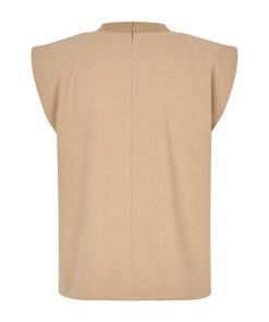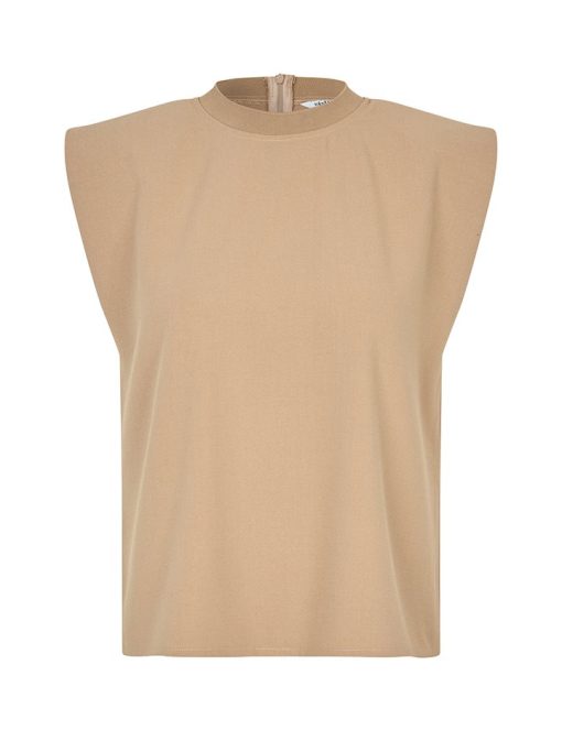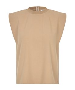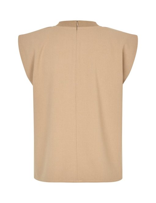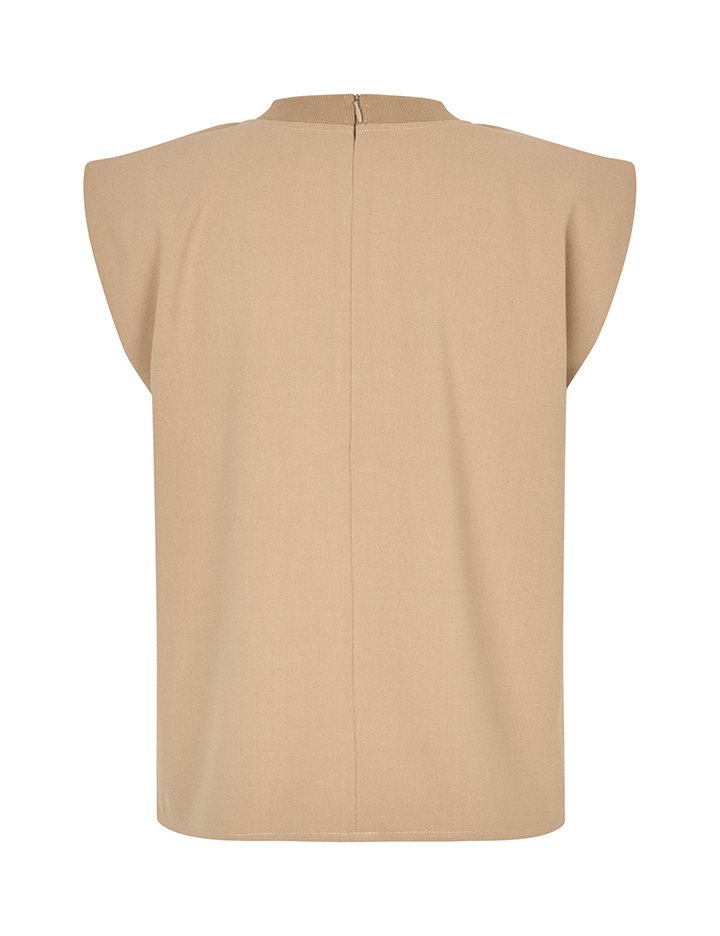 Top with shoulder pads.- Material: 60% Polyester, 35% Viscose, 5% Elastane- Without sleeves- Shoulder pads- Normal length- High neck- Relaxed fit- Hidden zip in the backThe height of the model is 175 cm and she is wearing a size S. She is wearing the matching Emmett-M trousers.