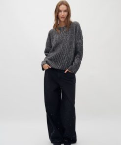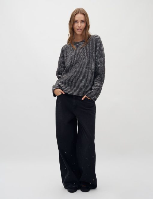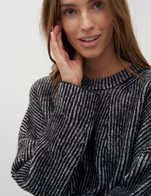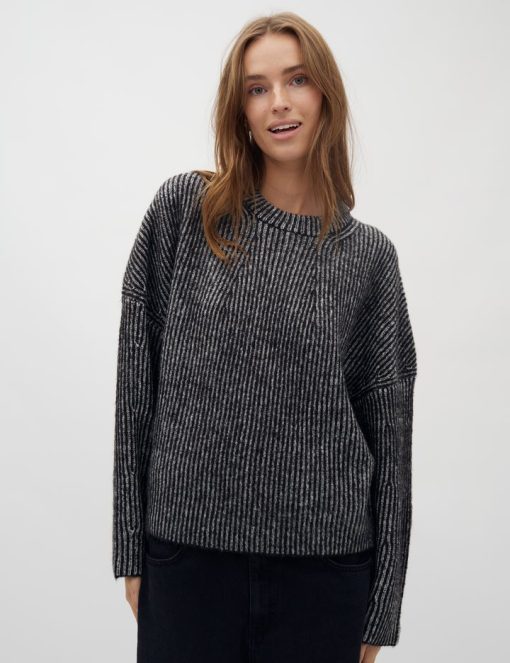 Knit in oversized fit- Long sleeves- Soft material- Round neck- Loose fit- Striped- This variant is: Black Contrast- Material: 51% Acrylic, 36% Nylon, 7% Elastane, 6% Wool