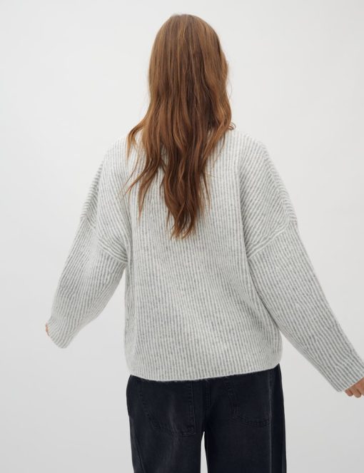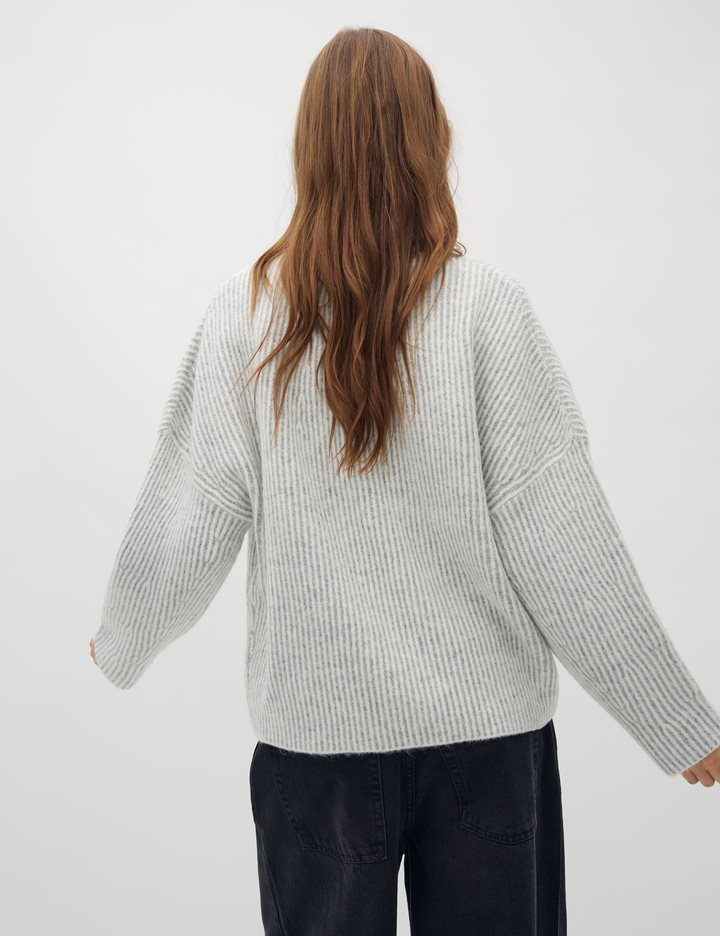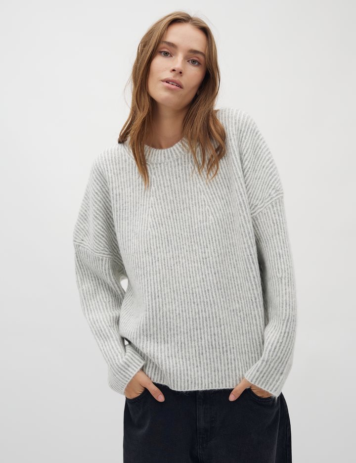 Knit in oversized fit- Long sleeves- Soft material- Round neck- Loose fit- Striped- This variant is: Light Grey Mix- Material: 51% Acrylic, 36% Nylon, 7% Elastane, 6% Wool