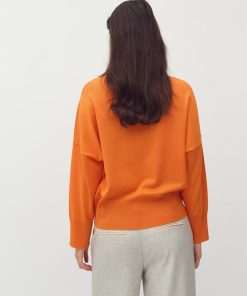 Oversize knit.- Material: 70% Viskose, 30% Polyester- Long sleeves- Soft material- Round neck- Loose fit- Colour: Orange PeelThe height of the model is 175 cm and she is wearing a size S.
