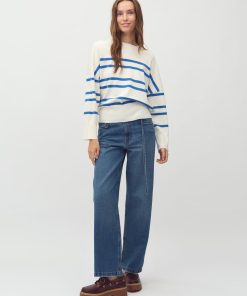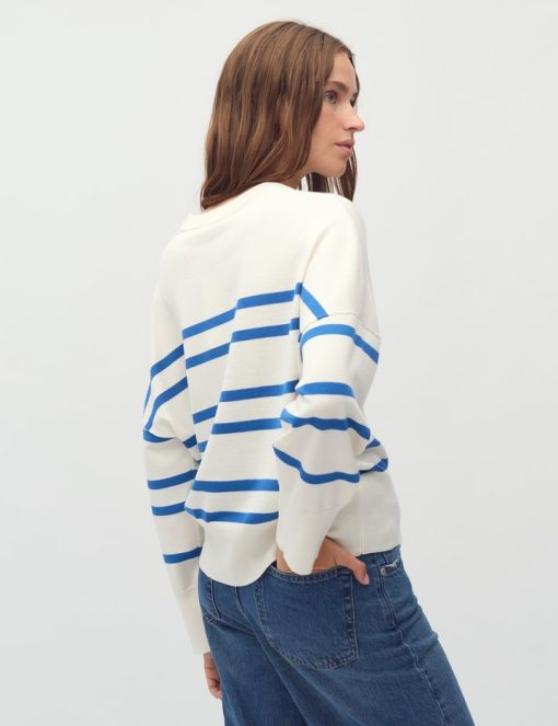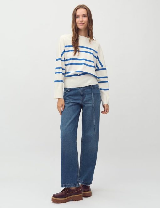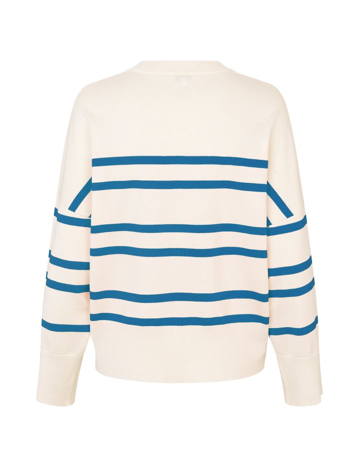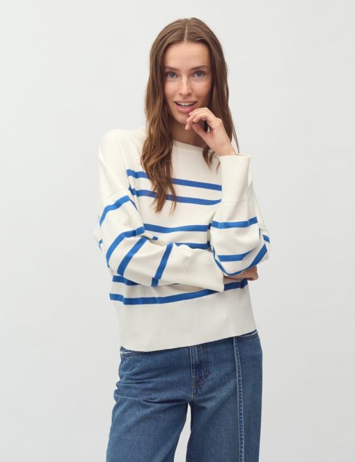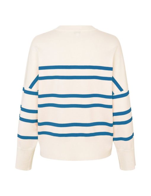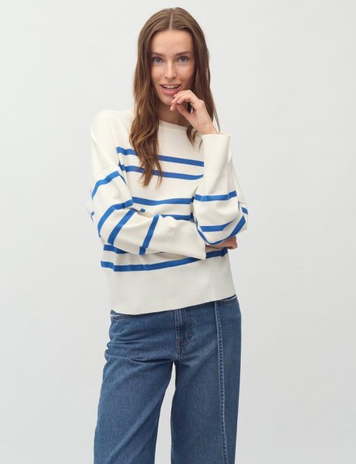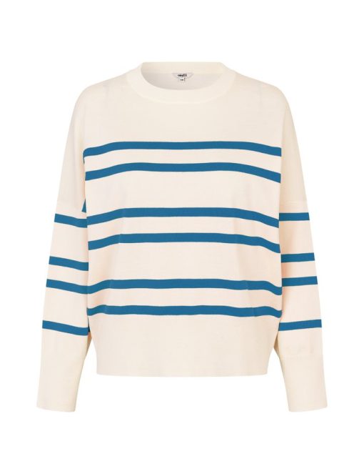 Oversize knit.- Material: 70% Viskose, 30% Polyester- Long sleeves- Soft material- Round neck- Loose fit- Colour: Sugar Star Sapphire StripeThe height of the model is 175 cm and she is wearing a size S.