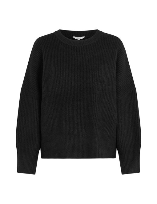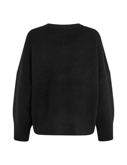 Loose fit knit pullover.- Material: 51% Acrylic, 36% Nylon, 7% Elastane, 6% Wool- Long sleeves- Soft material- Round neck- Loose fit- Colour: BlackThe height of the model is 174 cm and she is wearing size S.