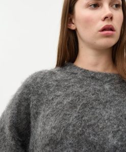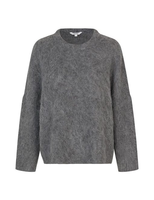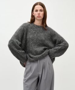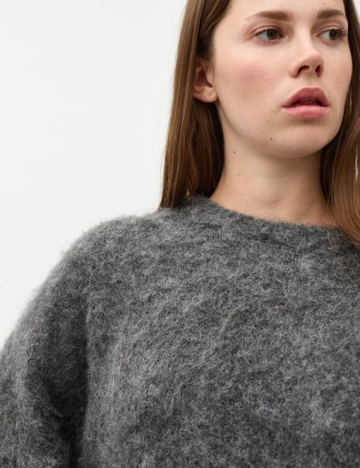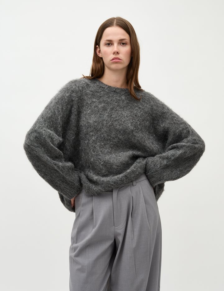 Oversized knit sweater.- Material: 58% Acrylic, 12% Wool, 14% Polyester, 14% Nylon, 2% Elastane- Round neckline- Loose fit- Brushed knit- Color: Dark Gray MelangeThe height of the model is 176 cm and she is wearing a size S.