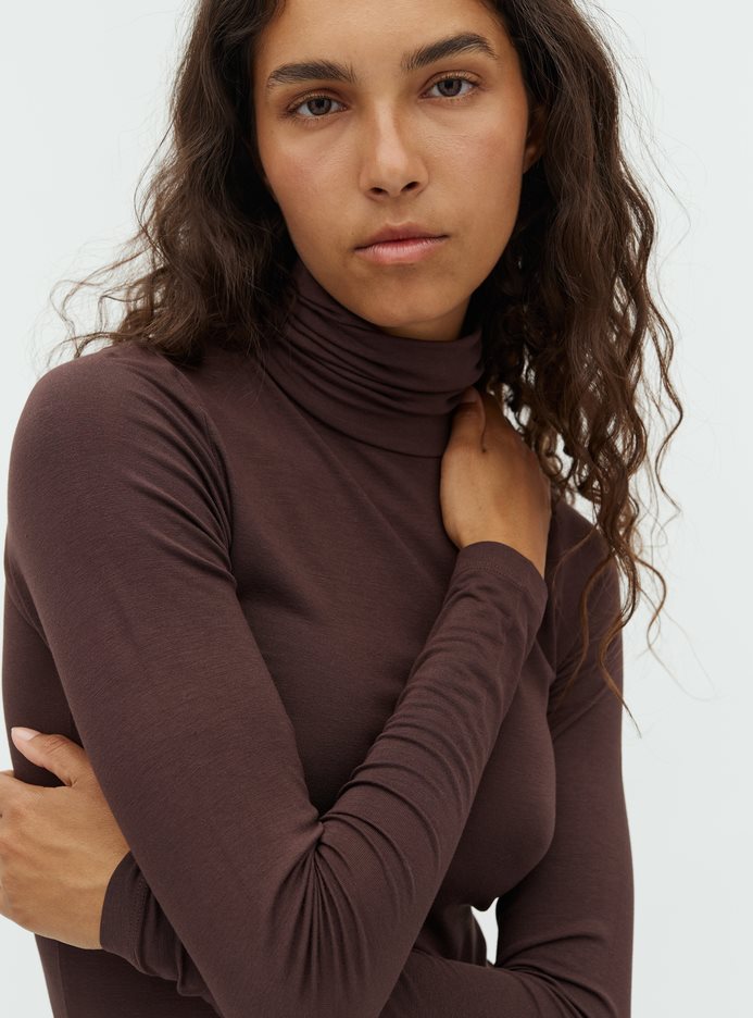 Ina is a long, basic top from mbyM GG – Stretchy fabric- Long sleeves- Turtleneck- Tight fit- Material: 95% TENCELâ„¢ Modal, 5% Elasthane