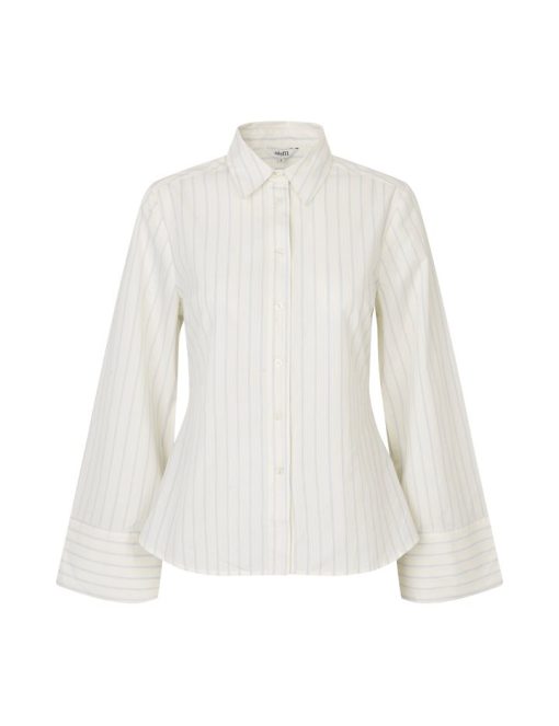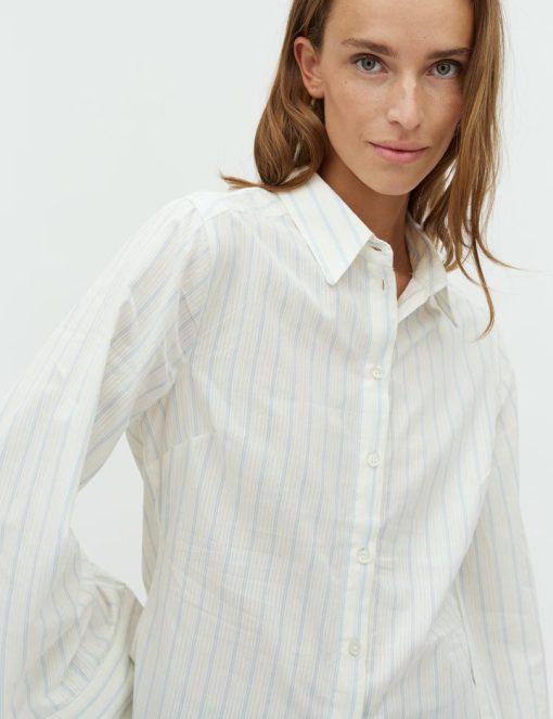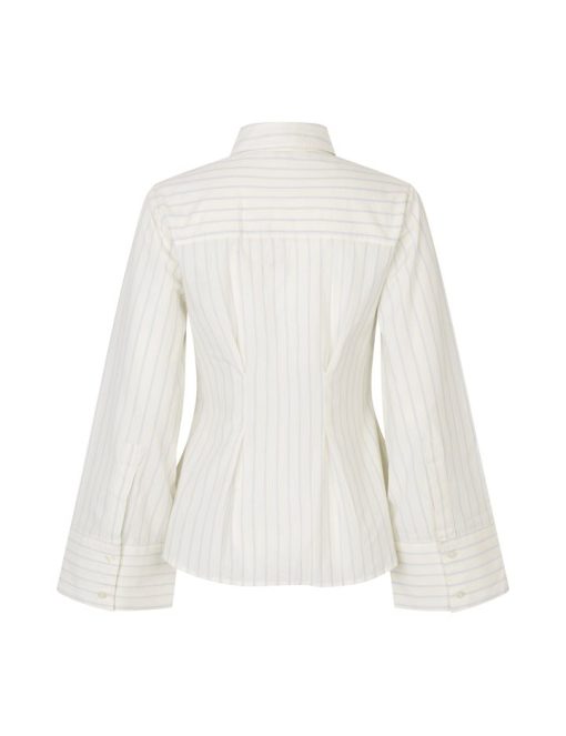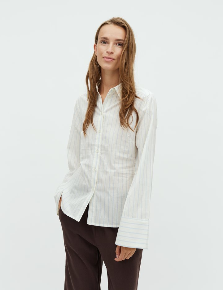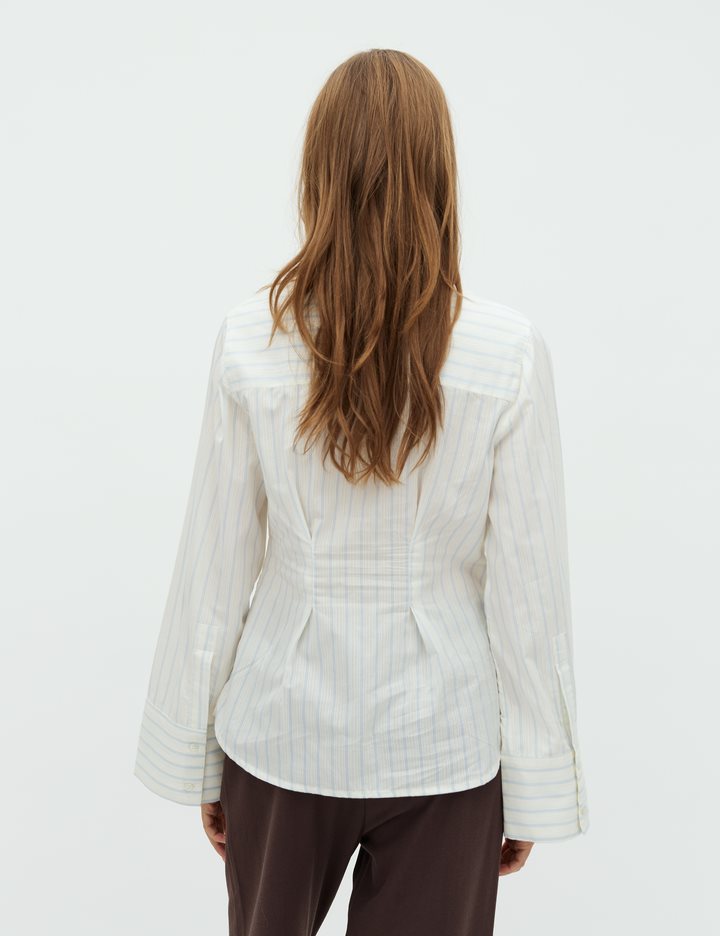 Slim fit shirt with pinstripes.- Material: 100% Cotton- Long sleeves with width- Slim fit- Regular length- Button closure- Shirt collar- Detail on the backThe model's height is 176 cm and she is wearing size S.
