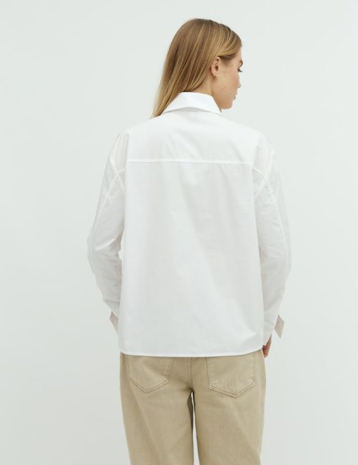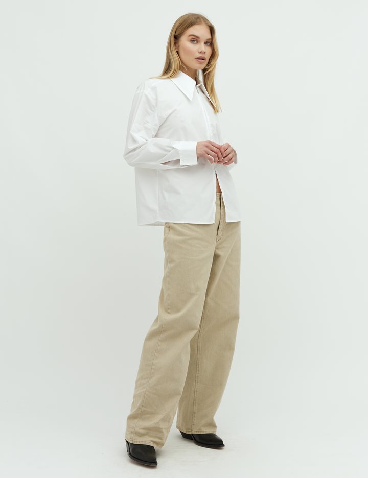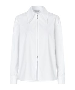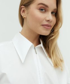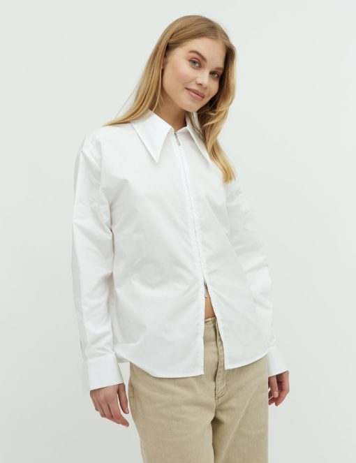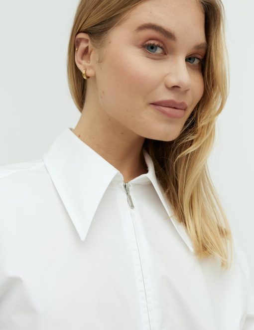 Cool shirt with zipper- Material: 100% Cotton- Two-way zipper- Large shirt collar- Oversized fit- Poplin quality- Color: WhiteThe model is 178 cm tall and wears size S