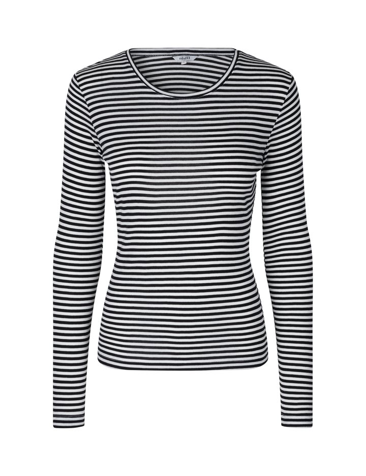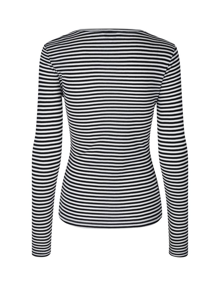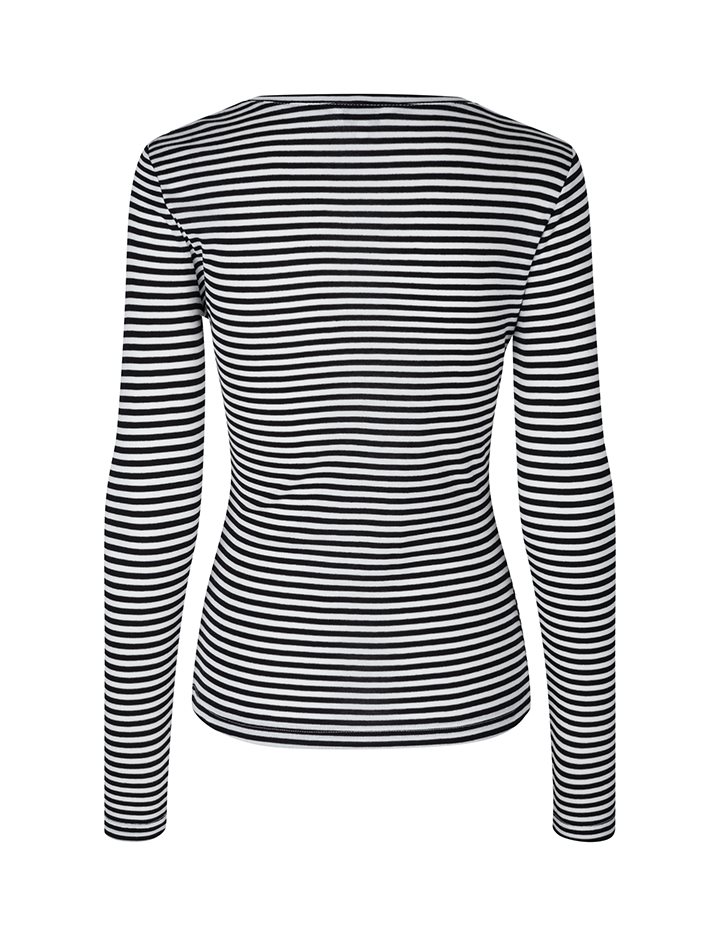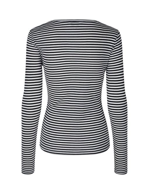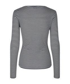 Simple basic top in a soft quality from mbyM GG.- Material: 100% TENCELâ„¢ Lyocell- With thin stripes- Long sleeves – Round neck- Color: Black Sugar Stripe