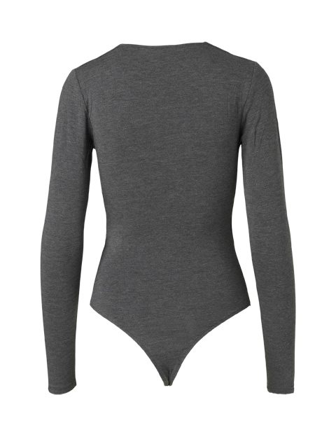 Feminine and simple body in a soft quality from mbyM GoGreen. This bodystocking has long sleeves and a deep v-neck. The top is perfect for any occasion and it can be styled for different looks.Material:5% Elastane95% TENCEL™ ModalThis version is: Dark Grey MelangeOur GoGreen garments are made of certified fabrics containing TENCEL™ Modal and TENCEL™ Lyocell fibers – wood based fibers with desirable properties such as; natural next-to-skin softness, moisture absorbency & breathability.When garments are Lenzing certified it is guaranteeing an environmentally responsible process. TENCEL™ is a trademark of Lenzing AG and with TENCEL™, Lenzing is on a continuous journey to contributing to a carbon neutral textile industry.