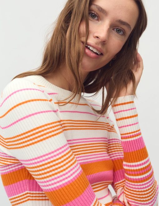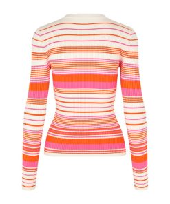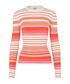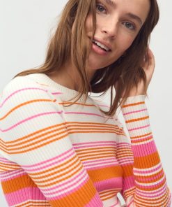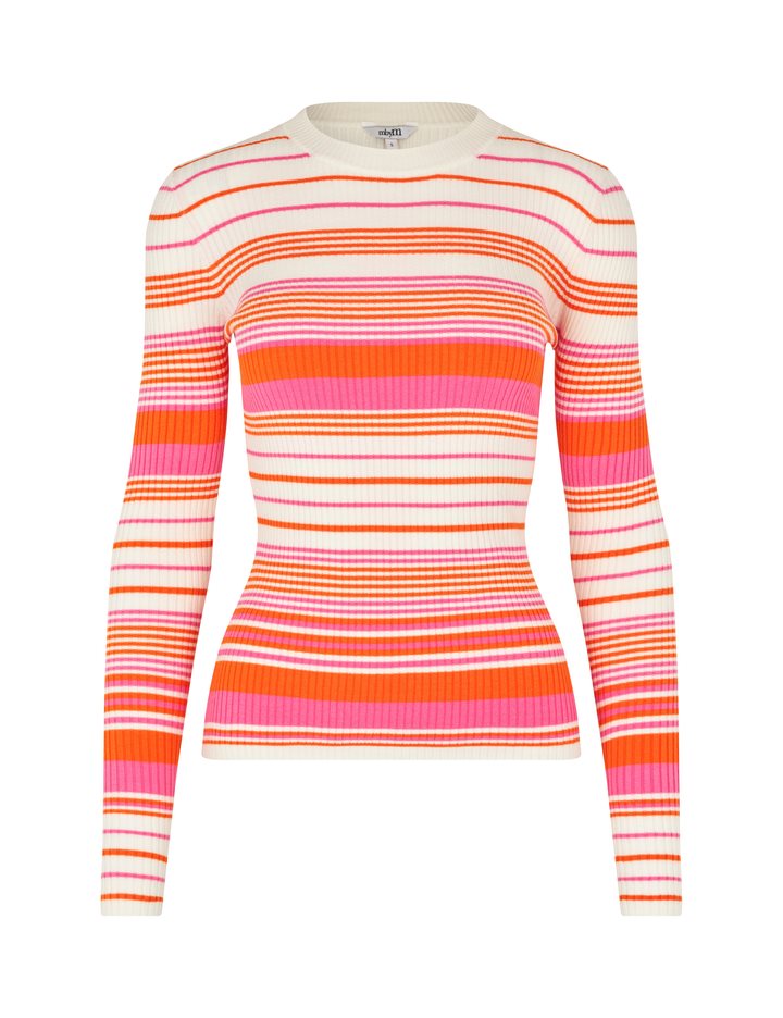 Striped knitted blouse.- Material: 40% Viscose, 40% Acrylic, 18% Nylon, 2% Elastane- Long sleeves- Round neck- Tight fit- Normal length