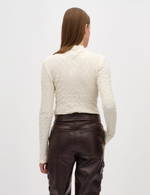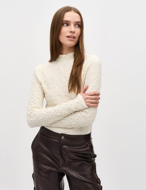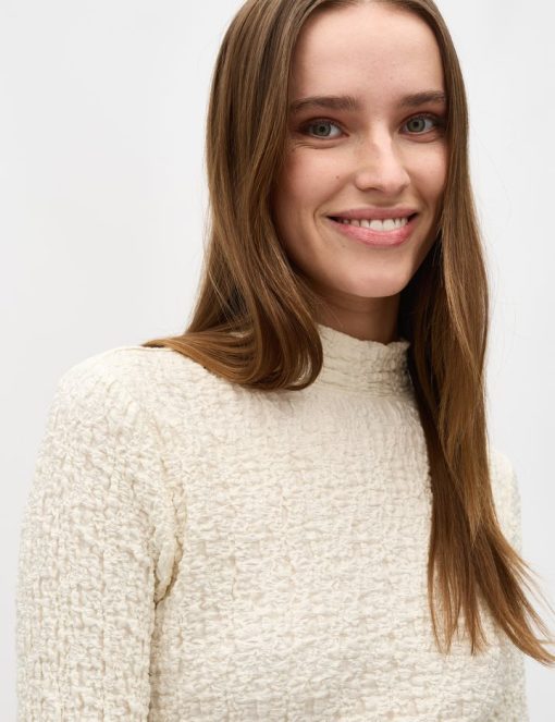 Tight-fitted blouse with structure.- Material: 40% Nylon, 50% Cotton, 10% Elastane- Long sleeves- Tight fit- High neck- Structures fabricThe height of the model is 174 cm and she is wearing a size S.