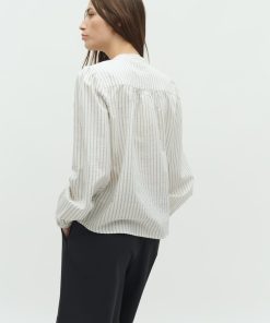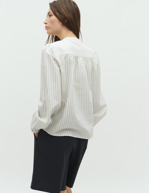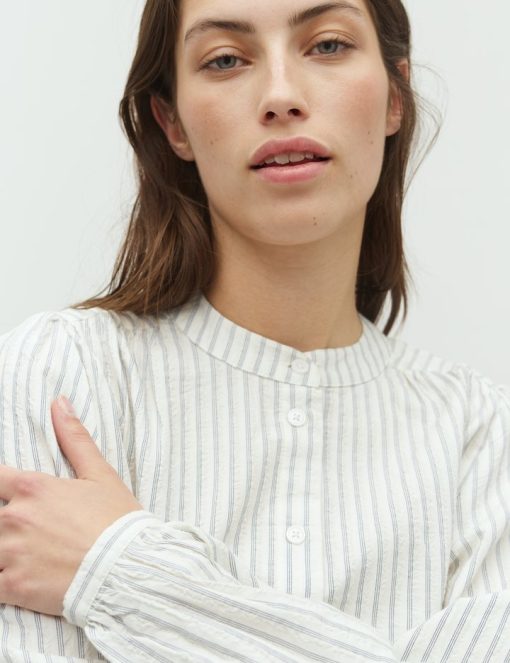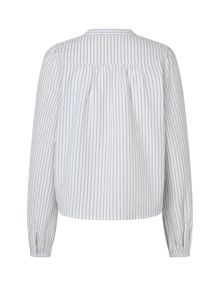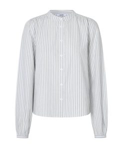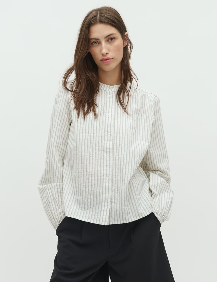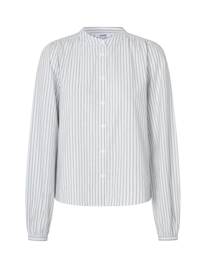 Simple shirt with stripes from mbyM.- Material: 100% Cotton- Long loose sleeves- Loose fit- Closes with buttons- Thin stripes- Colour: Light Sugar Blue Stripe