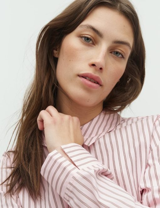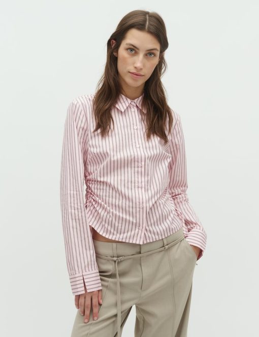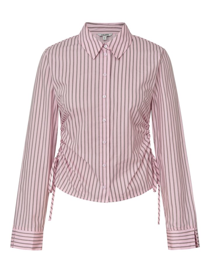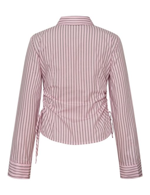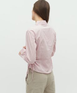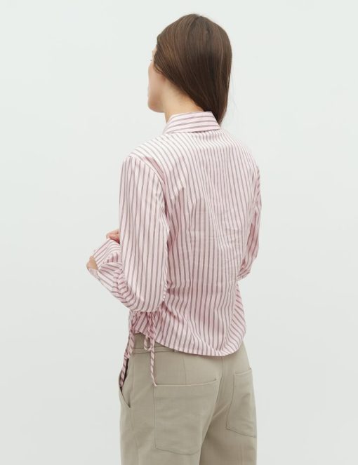 Shirt with tie detail on the side.- Material: 100% Cotton- Shirt collar- Fits snugly at the waist- Closes with buttons- Adjustable lace on the side- Striped