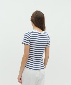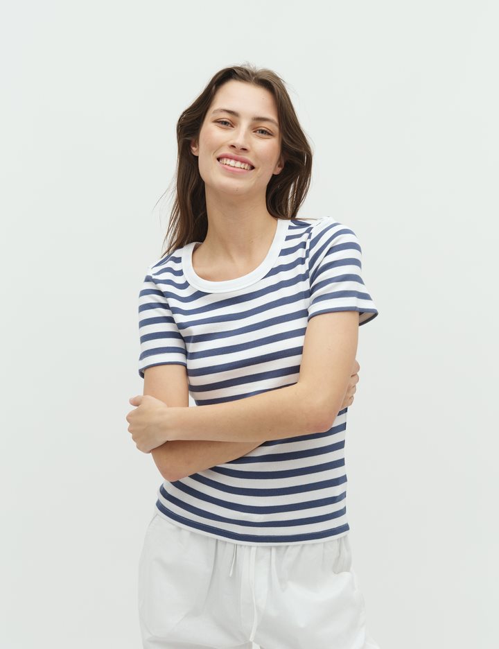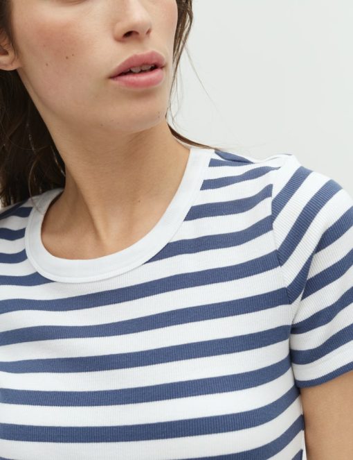 Simple t-shirt in a ribbed quality- Material: 95% Cotton, 5% Elastane- Round neckline- Short sleeves- Tight fit- Rib quality