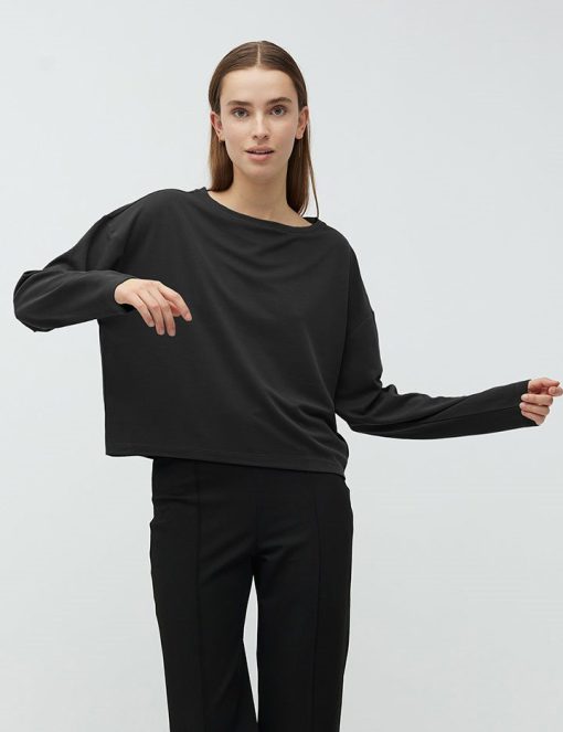 Basic blouse with a boxy fit.- Material: 80% TENCELâ„¢ Modal, 20% Polyester- Round neck- Long sleeves- Boxy fit- Short lengthThe height of the model is 176 cm and she is wearing a size S.