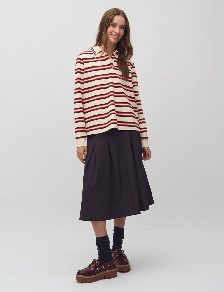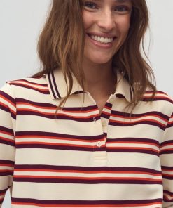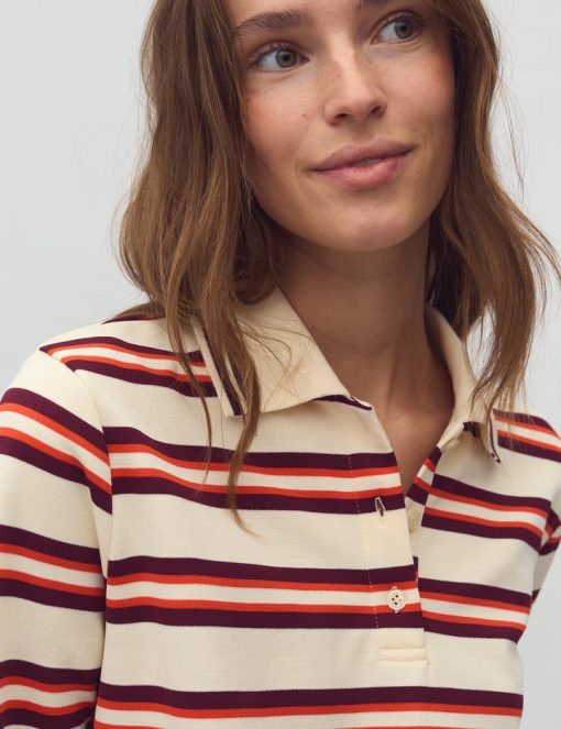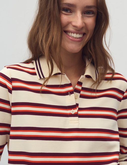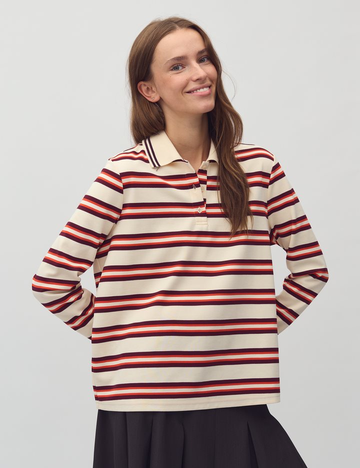 Striped polo shirt.- Material: 65% Polyester, 35% Cotton- Long sleeves- Collar- Buttons- Relaxed fitThe height of the model is 176 cm and she is wearing a size S.