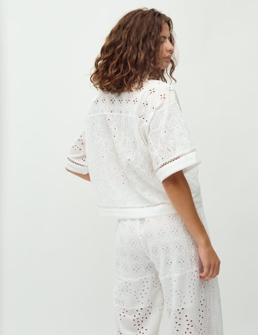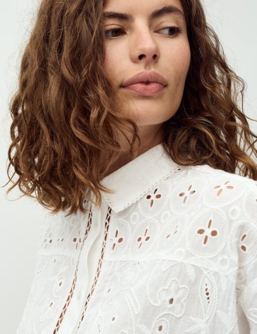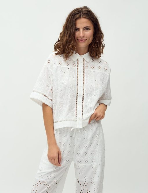 Short-sleeved shirt with embroidery.- Material: 100% Cotton- Short, wide sleeves- Button closure- Shirt collar- Boxy fit- Embroidery detailsThe model's height is 176 cm and she is wearing a size S.