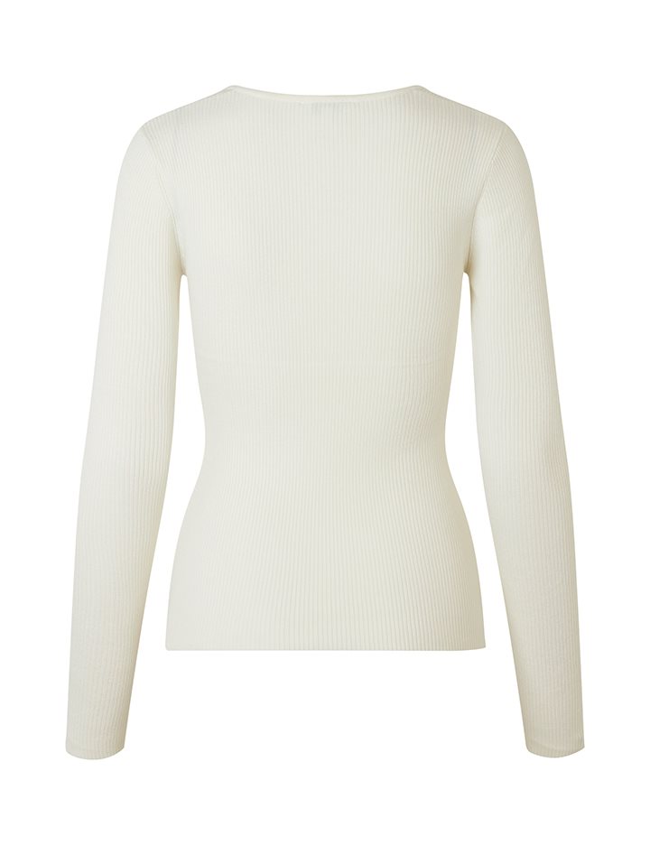 Knit in a thin rib quality- Material: 40% Acrylic, 40% Viscose, 18% Nylon, 2% Elastane- Long sleeves- Heart-shaped cutout- Tight fitting- Color: SugarThe height of the model is 179 cm, and wearing a size S