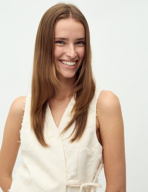 Vest with lace details.- Material: 100% Polyester- V-neck- Closes at the side with lace- Sleeveless- Regular lengthThe model's height is 176 cm and she is wearing size S.